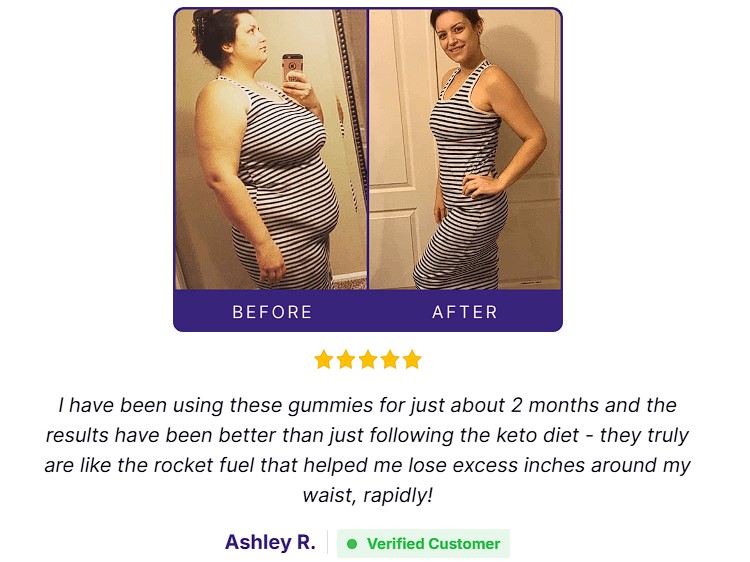 Darin K. (Verified) – “By far the best Keto product I have used… I was able to lose up to 18% body fat by just taking 2 gummies daily with my regular diet & workout routine.”